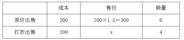 【答案】C【解析】本題中桌椅的銷量無實際值,而是以百分數(shù)的形式給出相關(guān)條件,不妨設這批桌椅的總量為10,打折后出售的價格為x。由題意,整理相關(guān)信息如下: