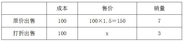 【答案】C【解析】本題沒有給我們關(guān)于價格和銷量具體的數(shù)值,只以百分數(shù)的形式給出相關(guān)條件,我們不妨設貨物的成本價為100,這批貨物的總量為10,打折后出售的價格為x,由題意,整理相關(guān)信息如下: