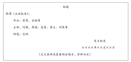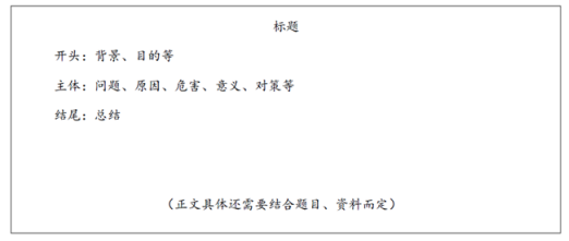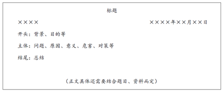 公文題的考查比較多樣,其所呈現(xiàn)出的寫作格式也較為多元。下面將從公文題的一般寫作格式、評論類公文的寫作格式、特殊的公文格式和大公文的寫作格式等方面進行具體介紹。