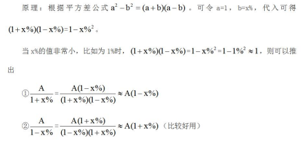 列式類(lèi)型時(shí),可以近似轉(zhuǎn)化成乘法進(jìn)行運(yùn)算,但是注意計(jì)算出的結(jié)果略偏小,需要選擇相對(duì)偏大的選項(xiàng)。