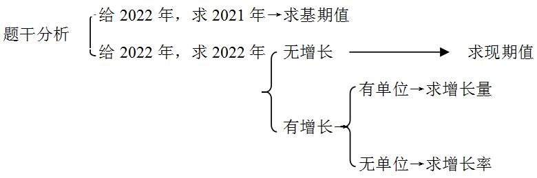 【政華點撥】題干分析,從左往右,先看時間,確定基期或現(xiàn)期;如果是現(xiàn)期,再看有無增長,若無,說明考現(xiàn)期值;若有,說明考增長;最后看有無單位,有單位說明考增長量、無單位說明考增長率。