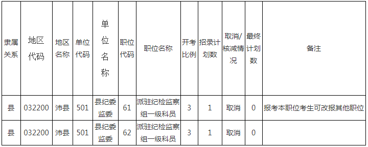 經(jīng)審核,我市共有2個(gè)職位未達(dá)開考比例。