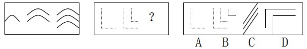 第二種題型:圖形推理。要求報考者從四個備選答案中選擇最符合規(guī)律的一個,替代題干中的問號,使該組圖形呈現出與前一組圖形一定的規(guī)律性。