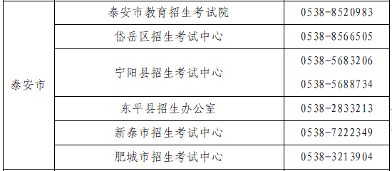 泰安市教育招生考試機構聯(lián)系方式