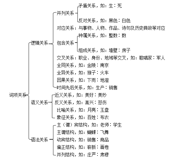 實(shí)際上也就是運(yùn)用造句的方法分析詞項(xiàng)間的關(guān)系,在多項(xiàng)型類比和對(duì)稱型類比中運(yùn)用較多。
