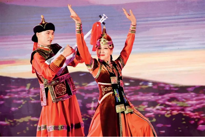 《瑪納斯》、《格薩爾》、《江格爾》三大民族英雄史詩是被納入我國第一批國家級(jí)非物質(zhì)文化遺產(chǎn)名錄的文化瑰寶。2023年7月13日晚,在新疆克孜勒蘇柯爾克孜自治州舉行的第九屆瑪納斯國際文化旅游節(jié)上,三大史詩同臺(tái)會(huì)演,吸引眾多觀眾前來觀看。圖為新疆博爾塔拉蒙古自治州歌舞團(tuán)演員在表演《江格爾》。新華社記者張瑜/攝
