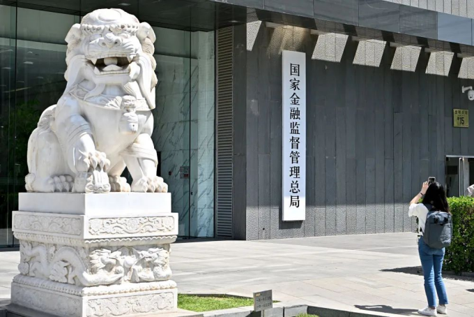 媒體記者在國家金融監(jiān)督管理總局門前拍攝(2023年5月18日攝)。新華社記者 李鑫 攝