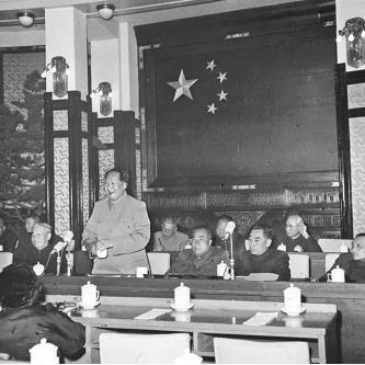 1956年4月25日,毛澤東同志在中央政治局?jǐn)U大會(huì)議上作《論十大關(guān)系》報(bào)告?!墩撌箨P(guān)系》以辯證思維對(duì)適合中國情況的社會(huì)主義建設(shè)道路進(jìn)行了初步的探索。圖為1956年5月2日,毛澤東同志在最高國務(wù)會(huì)議上進(jìn)一步闡述十大關(guān)系(資料照片)。 新華社發(fā)