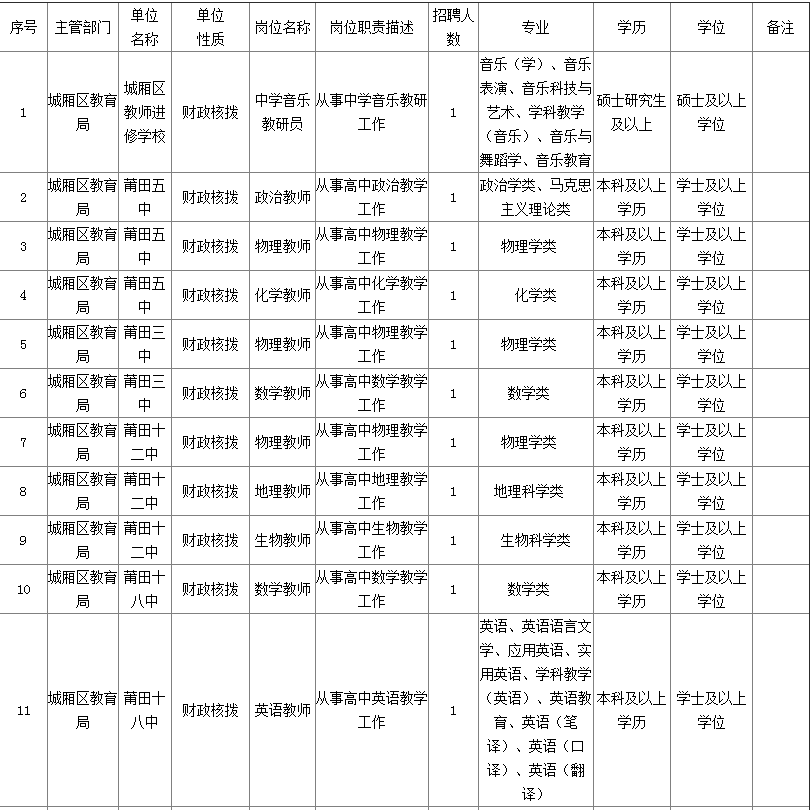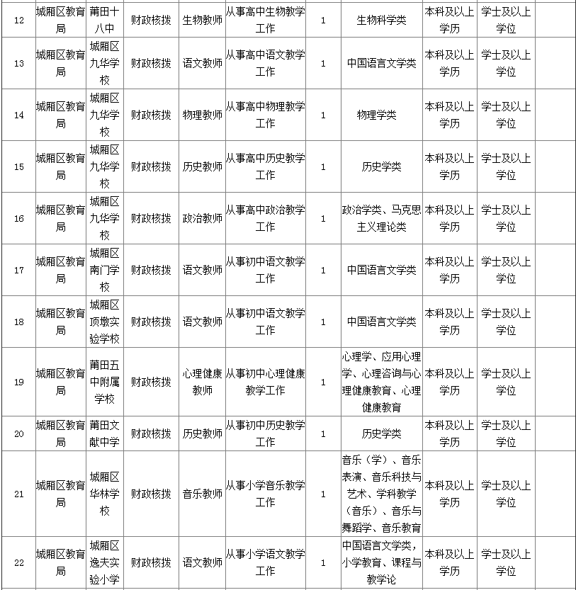莆田市城廂區(qū)2024年公開考核招聘新任教師方案