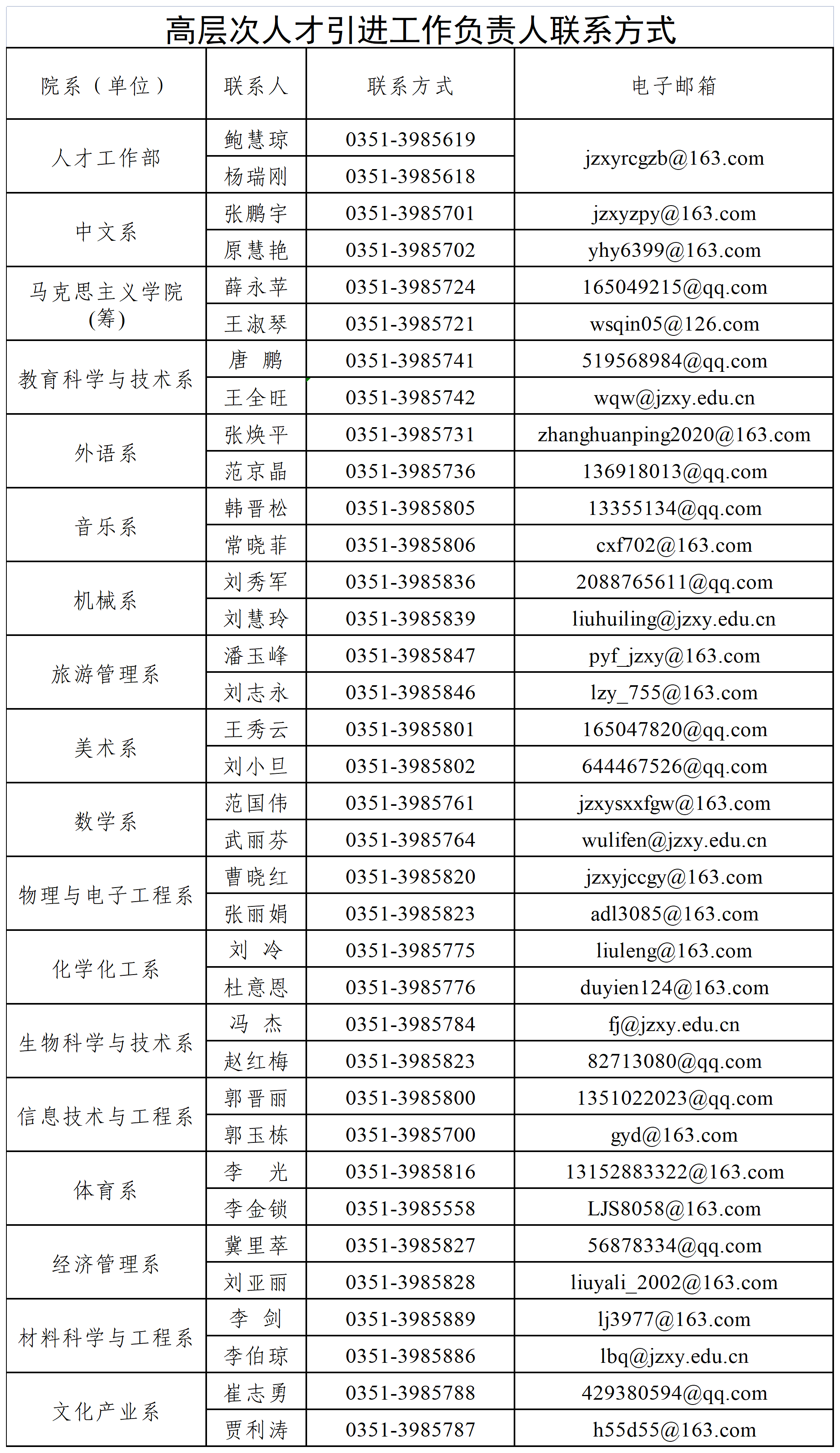 以上報名材料電子版及證件掃描版請同時發(fā)至人才工作部和相關(guān)院系電子郵箱(見附表)。報名郵件標題注明“姓名+學校+學歷+專業(yè)名稱”。