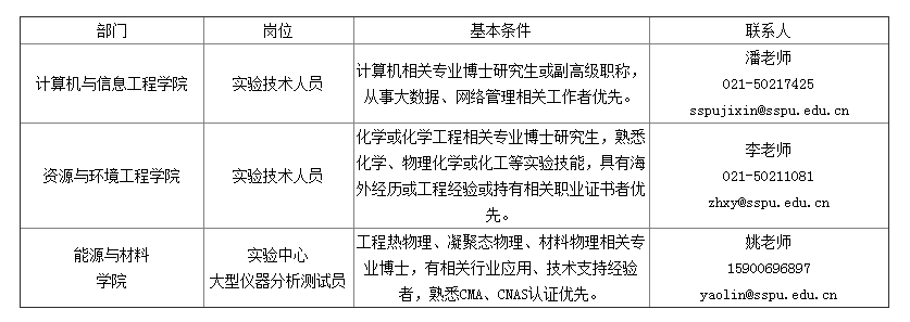 應(yīng)聘方法:應(yīng)聘者填寫上海第二工業(yè)大學(xué)求職申請表(見附件),連同相關(guān)材料(個人簡歷、學(xué)歷、學(xué)位、專業(yè)技術(shù)職稱、獲獎證書、科研成果的復(fù)印件、推薦信等集成一個PDF)通過電子郵件(郵件主題:姓名-專業(yè)-最高學(xué)歷-培養(yǎng)院校-應(yīng)聘崗位)方式發(fā)送至附件聯(lián)系人郵箱。