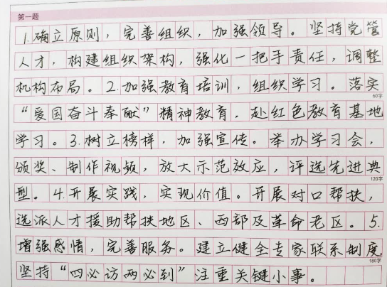 標(biāo)準(zhǔn)的得分點(diǎn)自然是取之于材料,用之于作答。抄材料不是盲目的抄上一段,每道題都有字?jǐn)?shù)限制,如何用有限的文字更全面更精準(zhǔn)的去表達(dá)材料,才是“抄材料”的精髓。還是比如我們剛剛舉例的材料,作為村里土生土長(zhǎng)的老鄉(xiāng)們,他們說(shuō)出的話(huà)必然是我們當(dāng)?shù)氐摹巴猎?huà)”,對(duì)于這類(lèi)話(huà)術(shù),我們重點(diǎn)去做規(guī)范表達(dá),用我們的書(shū)面語(yǔ)言、應(yīng)試語(yǔ)言體現(xiàn)這類(lèi)話(huà)術(shù);再舉例我們的駐村書(shū)記,組織內(nèi)部自己人,也能算是專(zhuān)業(yè)人員,對(duì)于這類(lèi)人員的話(huà)術(shù),可以取其精華棄其糟粕,完善成我們的標(biāo)準(zhǔn)答案;最后說(shuō)去學(xué)習(xí)經(jīng)驗(yàn)的干部,學(xué)來(lái)的經(jīng)驗(yàn)如何體現(xiàn)?還不是要寫(xiě)報(bào)告,同是天涯材料人,相逢何必曾相識(shí),這類(lèi)人說(shuō)出的話(huà)通常就是標(biāo)準(zhǔn)作答,抄之即可。