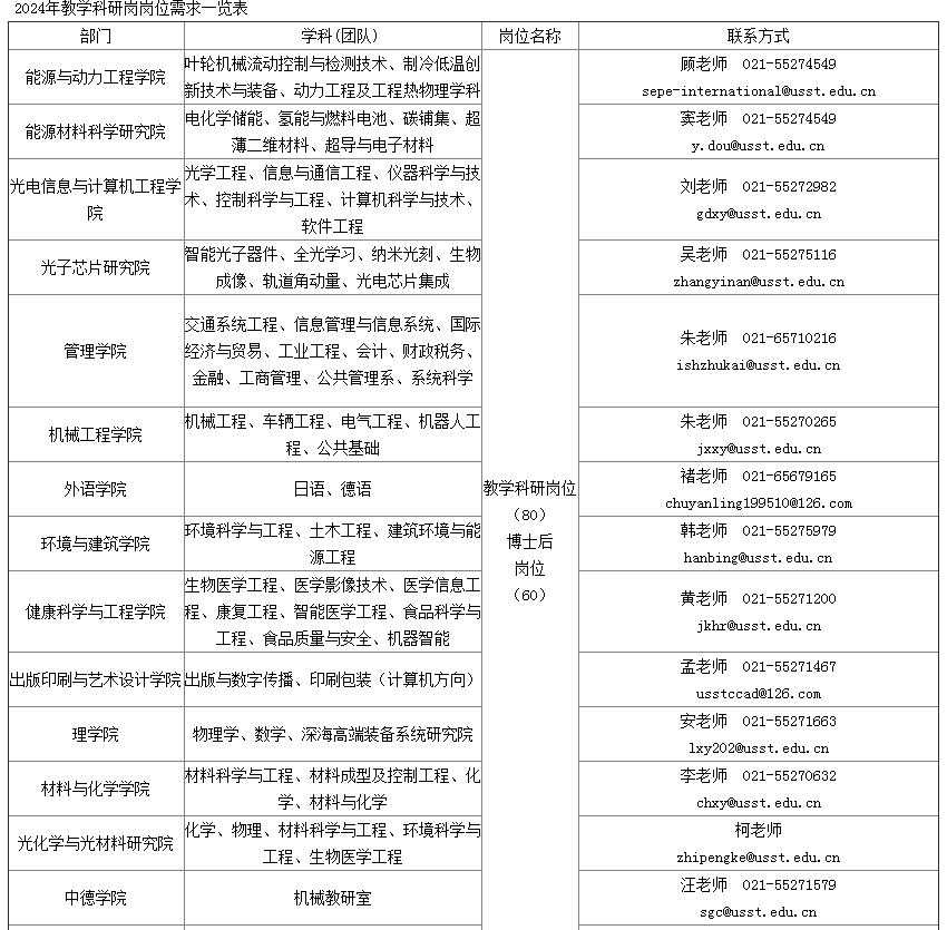 其他崗位信息登錄上海理工大學(xué)人才http://rc.usst.edu.cn/查閱。
