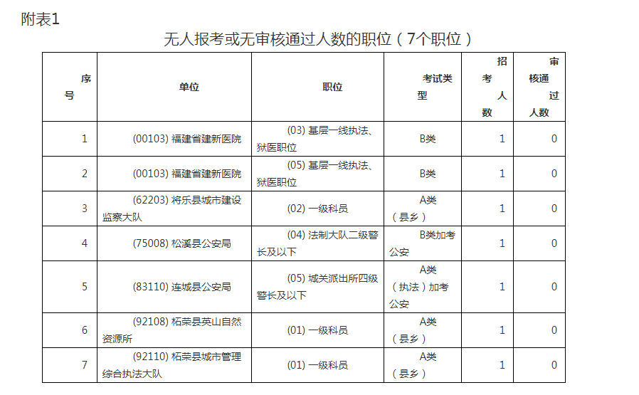 1.無人報考或無審核通過人數(shù)的職位(7個職位)