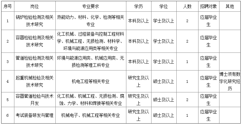 上海市特種設(shè)備監(jiān)督檢驗技術(shù)研究院根據(jù)《上海市事業(yè)單位公開招聘人員辦法》(滬人社規(guī)〔2019〕15號),按照公開、平等、競爭、擇優(yōu)的原則,現(xiàn)面向社會公開招聘工作人員。