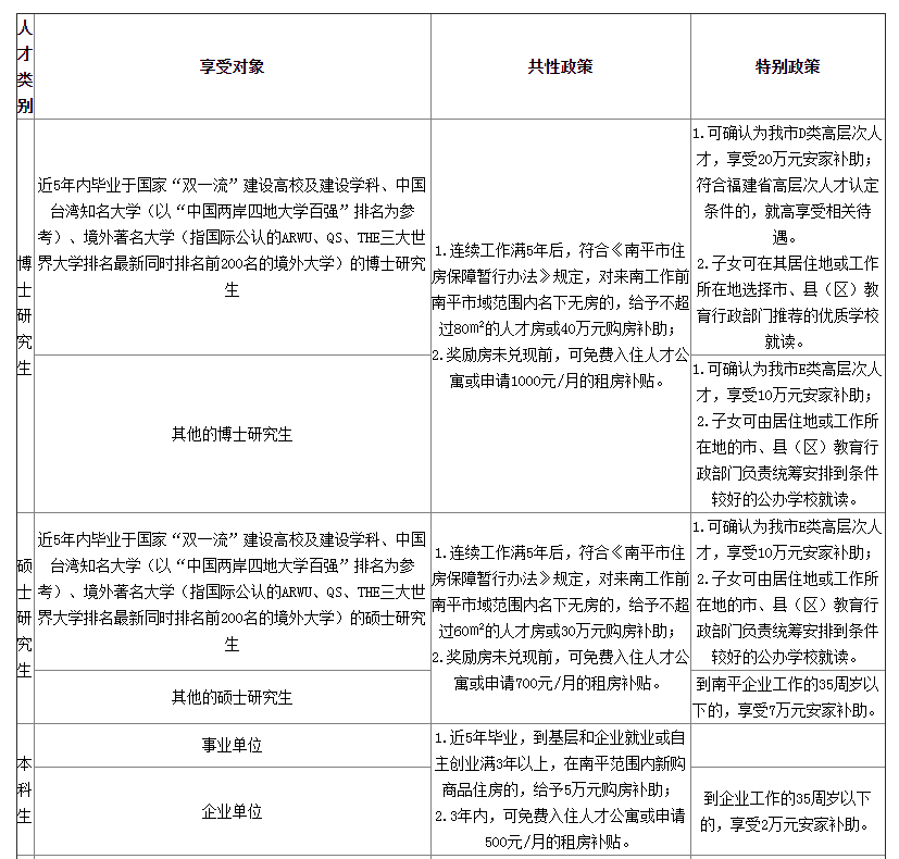 2.招引到的各類普通全日制本科及以上學歷畢業(yè)生,符合條件的可登陸“智匯武夷”線上平臺申請享受我市各類人才政策待遇,具體如下: