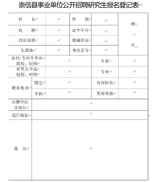 附件:崇信縣事業(yè)單位公開招聘研究生報名登記表