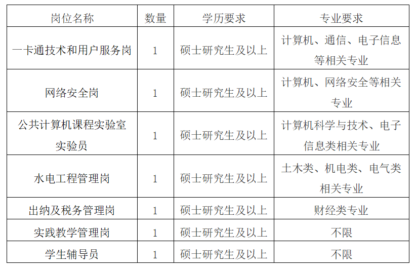 招聘共需崗位7個(gè),人員7人。