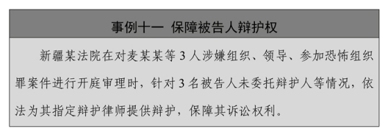 ??——保障辯護(hù)權(quán)??植阑顒?dòng)犯罪嫌疑人、被告人自被偵查機(jī)關(guān)第一次訊問或者采取強(qiáng)制措施之日起,就有權(quán)委托辯護(hù)人辯護(hù),符合法定情形的有權(quán)獲得法律援助。司法機(jī)關(guān)和司法行政機(jī)關(guān)積極推動(dòng)刑事案件審查起訴階段的律師辯護(hù)全覆蓋試點(diǎn)工作,為沒有辯護(hù)人的犯罪嫌疑人指派律師提供法律援助,擴(kuò)大刑事法律援助范圍。此外,為確保犯罪嫌疑人、被告人的辯護(hù)權(quán)落到實(shí)處、獲得有效辯護(hù),司法機(jī)關(guān)還進(jìn)一步強(qiáng)化訴訟過程中律師的知情權(quán)、申請(qǐng)權(quán)、申訴權(quán),以及會(huì)見、閱卷、收集證據(jù)和發(fā)問、質(zhì)證、辯論辯護(hù)等各項(xiàng)權(quán)利保障。