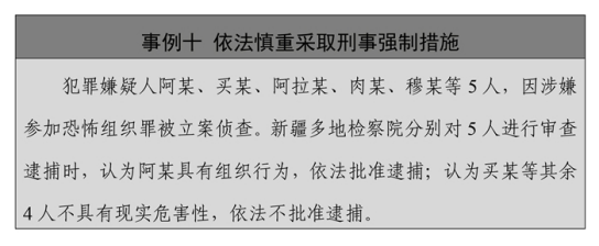 ??——保障人身自由、人格尊嚴(yán)。中國(guó)憲法法律明確規(guī)定,公民的人身自由、人格尊嚴(yán)不受侵犯。辦案機(jī)關(guān)辦理恐怖活動(dòng)犯罪案件,采取拘留、逮捕等限制人身自由的強(qiáng)制措施時(shí),嚴(yán)格遵守法律規(guī)定的條件、程序和期限。未經(jīng)人民檢察院批準(zhǔn)或者人民法院決定,公安機(jī)關(guān)不得實(shí)施逮捕。人民檢察院加強(qiáng)羈押必要性審查,對(duì)沒有繼續(xù)羈押必要的,建議予以釋放或變更強(qiáng)制措施,并嚴(yán)格把握延長(zhǎng)偵查羈押期限的條件,對(duì)不符合條件的不予延長(zhǎng)。辦案機(jī)關(guān)嚴(yán)格遵守關(guān)于人格尊嚴(yán)不受侵犯的憲法法律規(guī)定,保證恐怖活動(dòng)違法犯罪嫌疑人、被告人飲食和必要的休息時(shí)間,不得體罰、虐待、侮辱,禁止在審訊過程中毆打、威脅、恐嚇,嚴(yán)禁刑訊逼供和以威脅、引誘、欺騙以及其他非法方法收集證據(jù),不得強(qiáng)迫自證其罪,采用刑訊逼供等非法方法收集的犯罪嫌疑人、被告人供述應(yīng)當(dāng)予以排除。