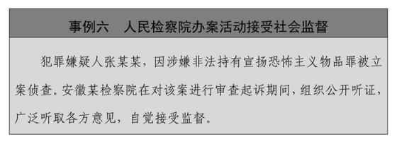 ??——拓寬監(jiān)督渠道。中國(guó)執(zhí)法司法辦案機(jī)關(guān)持續(xù)拓寬監(jiān)督渠道,通過多種方式強(qiáng)化社會(huì)監(jiān)督,不斷增強(qiáng)執(zhí)法司法透明度,防止執(zhí)法權(quán)、司法權(quán)被濫用。人民法院通過審判流程信息公開、裁判文書公開、執(zhí)行信息公開、庭審公開等加大司法公開力度,及時(shí)公布法院審判、執(zhí)行工作情況。人民檢察院推行檢務(wù)公開,依法公開與檢察職權(quán)相關(guān)的活動(dòng)和事項(xiàng),并充分運(yùn)用現(xiàn)代化信息手段,建立檢務(wù)公開信息平臺(tái),設(shè)置電子顯示查詢?cè)O(shè)備,開通網(wǎng)站、網(wǎng)頁(yè)等,方便檢務(wù)信息查詢。公安機(jī)關(guān)推行警務(wù)活動(dòng)公開,行政處罰遵循公開原則,執(zhí)法過程、處罰結(jié)果自覺接受社會(huì)和公民的監(jiān)督。司法行政機(jī)關(guān)推行獄務(wù)公開,將監(jiān)獄執(zhí)法工作的條件、程序、結(jié)果依法向社會(huì)公開,加強(qiáng)監(jiān)獄工作的規(guī)范化、制度化、法治化建設(shè),規(guī)范執(zhí)法行為。