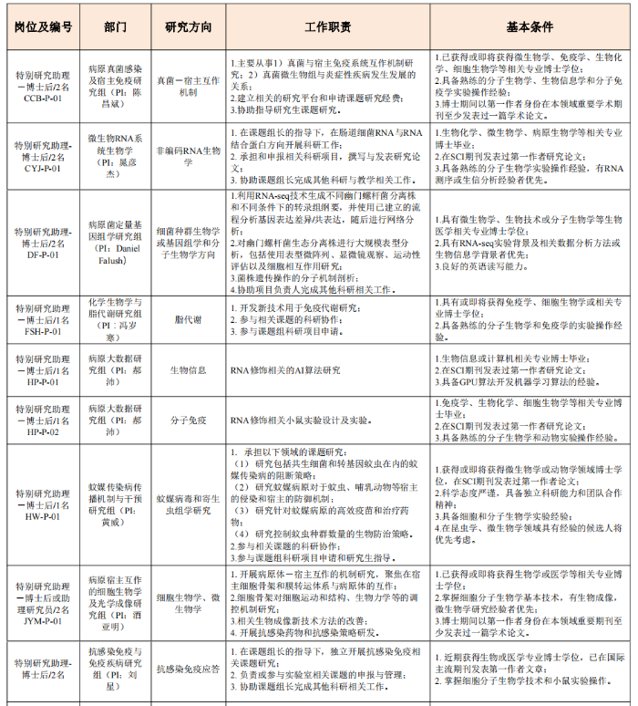 崗位二:博士后(特別研究助理)(28人)