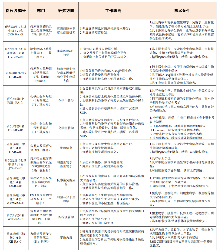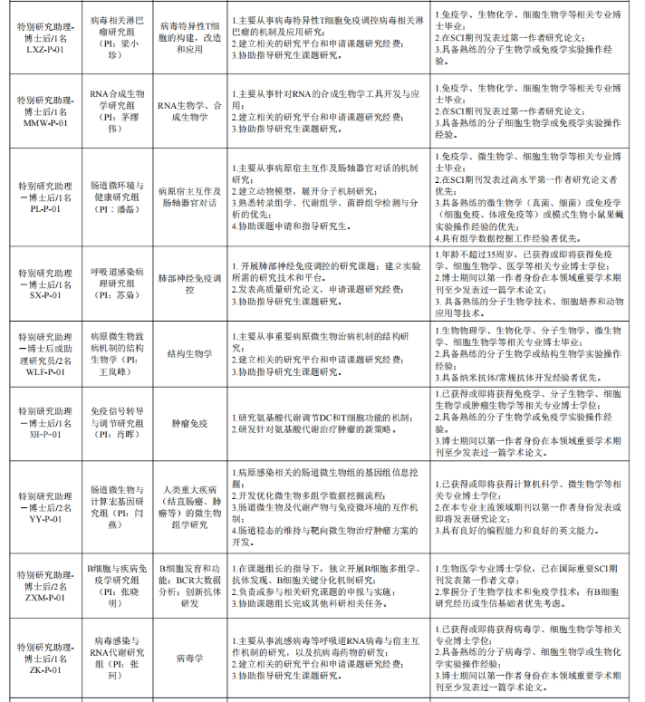 中國科學院上海免疫與感染研究所2024年度科研崗位招聘啟事