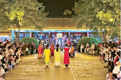 近年來(lái),河北省大力推動(dòng)文旅深度融合,深入實(shí)施文化惠民工程,全省文化產(chǎn)業(yè)快速發(fā)展,文化事業(yè)生機(jī)盎然。圖為2023年10月1日,石家莊市正定縣榮國(guó)府實(shí)景演出,生動(dòng)還原了《紅樓夢(mèng)》中的經(jīng)典片段,吸引眾多游客駐足觀(guān)看。河北日?qǐng)?bào)記者 張曉超/攝