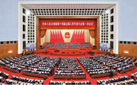 圖為2023年3月5日,第十四屆全國人民代表大會第一次會議在北京人民大會堂開幕。新華社記者翟健嵐/攝