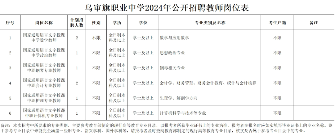 烏審旗職業(yè)中學(xué)2024年公開招聘教師公告