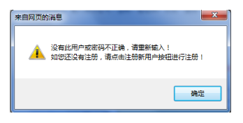 注:1、登錄時(shí)提示‘沒有此用戶或密碼不正確’如圖1-6,請考生確認(rèn)是否注冊,如未注冊請先注冊,如果已注冊請確認(rèn)輸入的密碼是否正確。