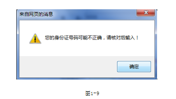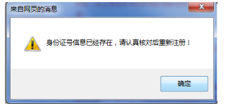 2、相同的身份證號只允許注冊一次,如多次注冊,則會提示錯誤,如圖1-7所示: