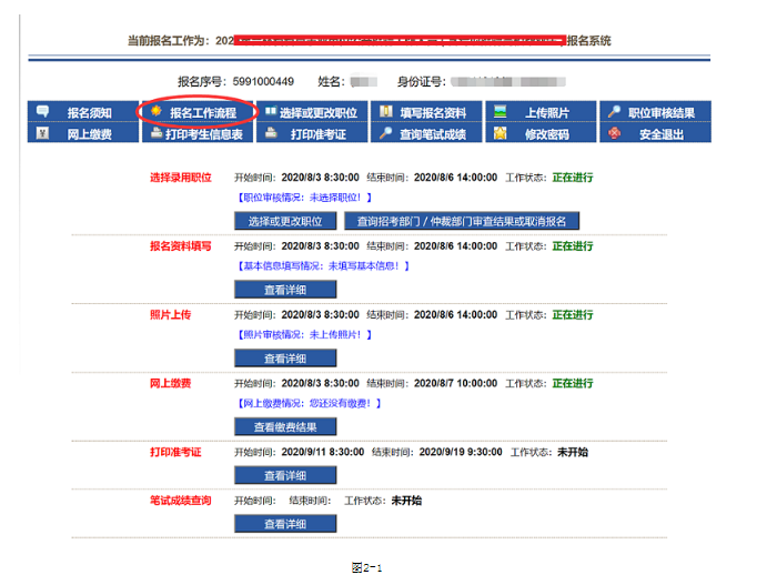 1、點(diǎn)擊報(bào)名工作流程會顯示如圖2-1頁面: