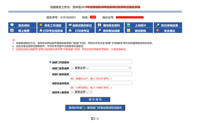 2、點(diǎn)擊‘選擇錄用職位’進(jìn)入職位查詢界面如圖2-2,可以按照不同條件查詢招考職位的情況。