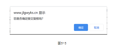 (1、資格審查結(jié)果列表(如圖5-2)中,點(diǎn)擊‘提交復(fù)核’有如下提示(如圖5-5),‘確定’后填寫提交復(fù)核的原因(如圖5-6),點(diǎn)擊‘提交’即完成提交復(fù)核。