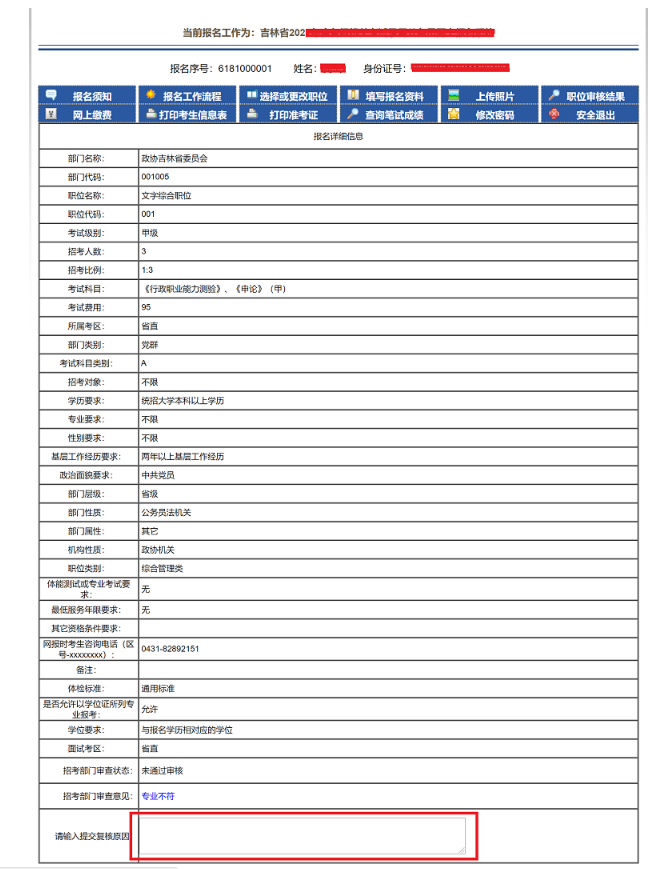 注:復(fù)核不通過將不允許重新選擇該職位,只可選擇其他職位。