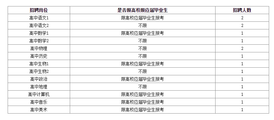 3.招聘對象:于2024年8月31日前須提供相應(yīng)學(xué)歷畢業(yè)證書、和與招聘崗位學(xué)科一致的高中及以上教師資格證。