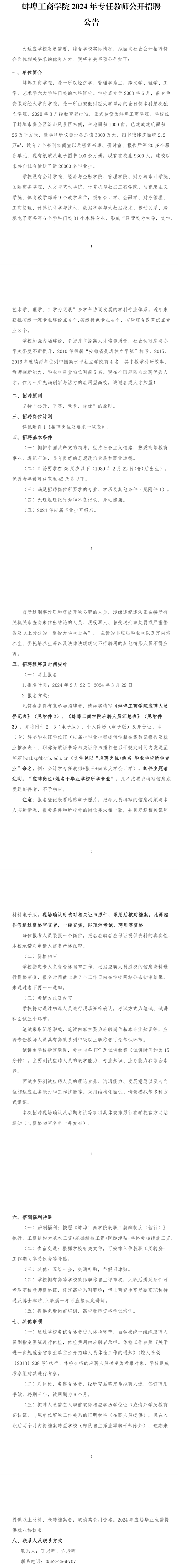 蚌埠工商學(xué)院2024年專任教師公開招聘公告