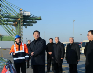 2019年1月17日下午,習(xí)近平總書(shū)記在天津港碼頭考察。新華社記者鞠鵬攝