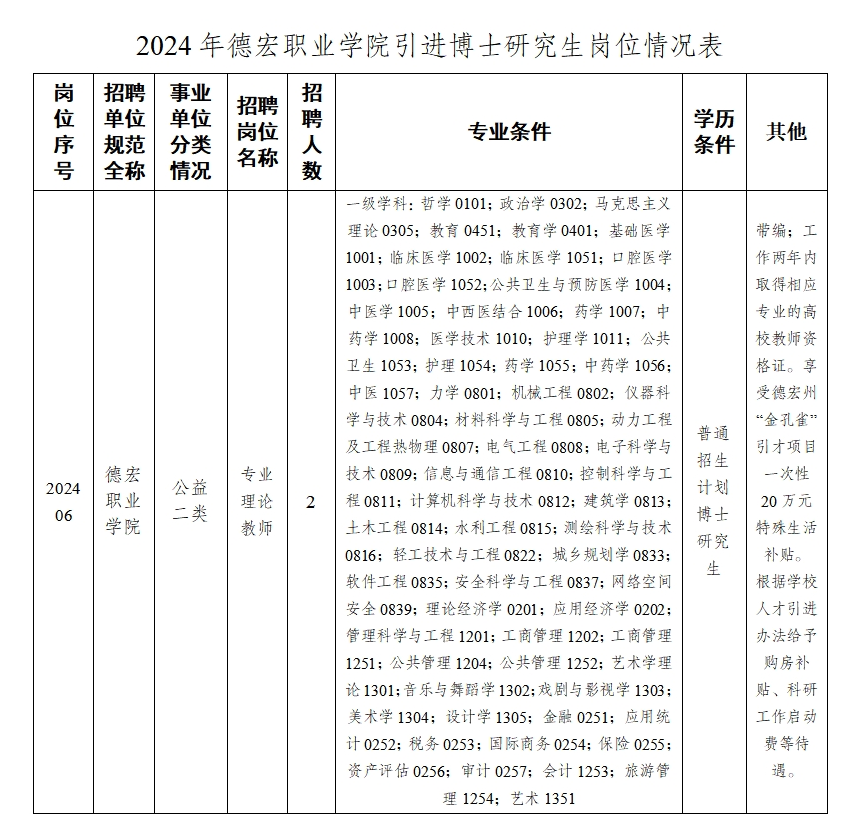 德宏職業(yè)學(xué)院2024年引進(jìn)博士研究生公告