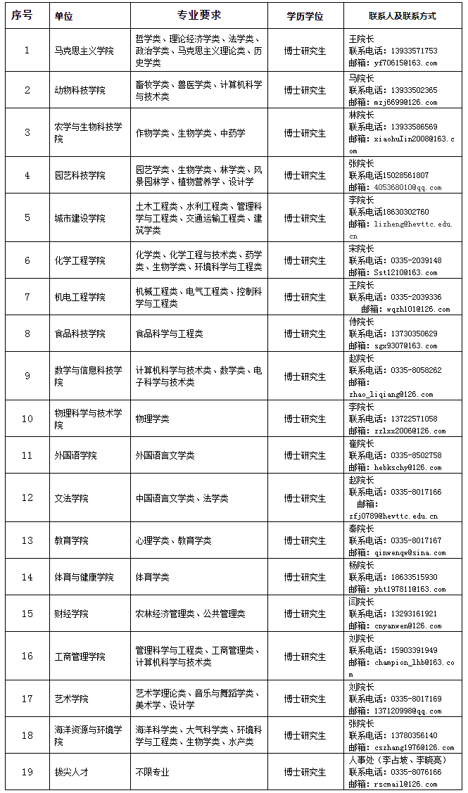 河北科技師范學院2024年高層次人才招聘專業(yè)范圍及聯(lián)系方式