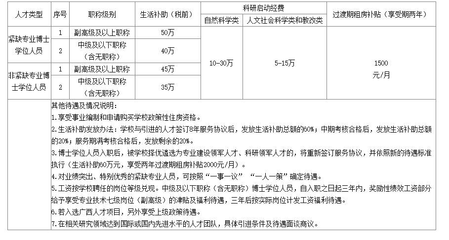 引進人才類型及待遇
