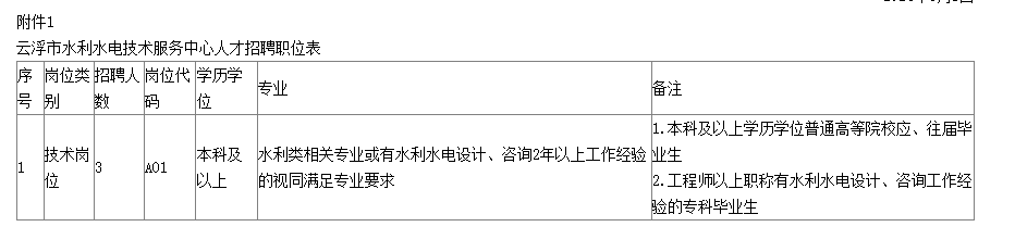 附件1:云浮市水利水電技術(shù)服務(wù)中心人才招聘職位表