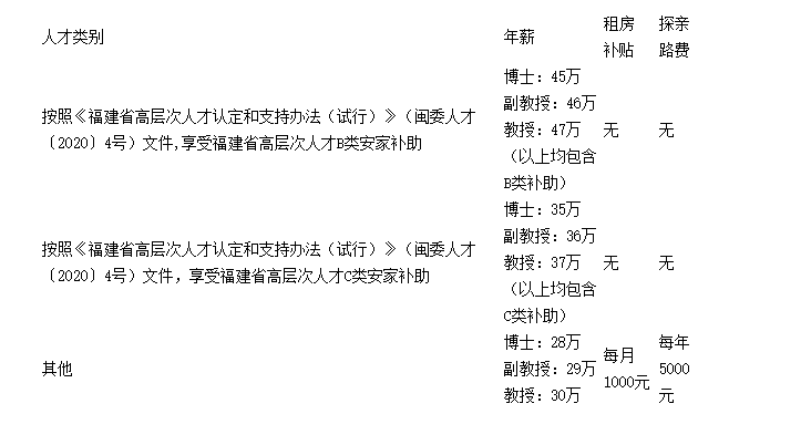 學(xué)校審批通過同意聘用的,由教師工作部(人事處)通知應(yīng)聘者辦理相關(guān)手續(xù),簽訂聘用合同。按照《福建省高層次人才認(rèn)定和支持辦法(試行)》(閩委人才〔2020〕4號)文件享受福建省高層次人才B類或C類安家補助的人才聘期六年,其他人才聘期三年。