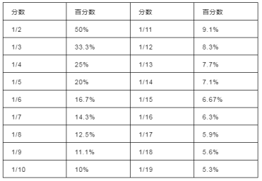 分?jǐn)?shù)百分?jǐn)?shù)轉(zhuǎn)化表