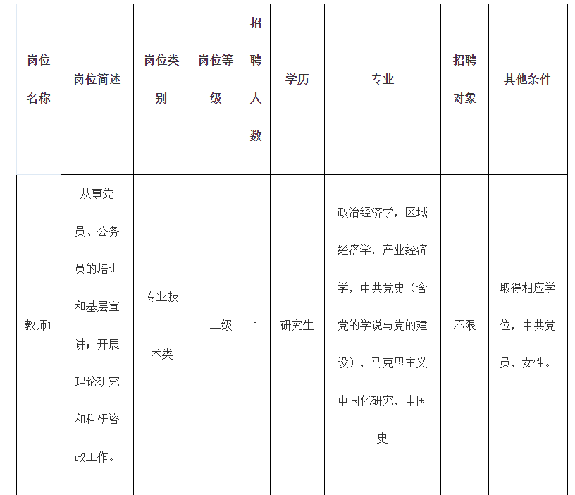 為進(jìn)一步加強(qiáng)黨校教師隊(duì)伍建設(shè),適應(yīng)黨校發(fā)展需要,根據(jù)《江蘇省事業(yè)單位公開招聘人員辦法》(蘇辦發(fā)﹝2020﹞9號(hào))文件精神,中共無(wú)錫市錫山區(qū)委黨校面向社會(huì)公開招聘事業(yè)編制教師2名,現(xiàn)將有關(guān)事項(xiàng)公告如下:
