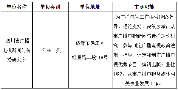 根據(jù)《事業(yè)單位人事管理條例》、《事業(yè)單位公開招聘人員暫行規(guī)定》和《四川省省屬事業(yè)單位公開招聘工作人員實施細(xì)則(試行)》等有關(guān)規(guī)定,四川廣播電視臺擬面向社會公開招聘部分工作人員補充到下屬事業(yè)單位四川省廣播電視新聞與傳播研究所工作?,F(xiàn)將公開招聘有關(guān)事項公告如下(本公告由四川廣播電視臺同時在四川省人力資源和社會保障廳官網(wǎng)[rst.sc. gov.cn,下同]“人事考試”專欄和四川廣播電視臺官網(wǎng) [www.sctv.com]上發(fā)布。