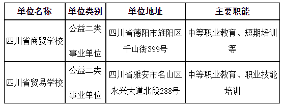 根據(jù)《事業(yè)單位人事管理條例》、《事業(yè)單位公開招聘人員暫行規(guī)定》和《四川省省屬事業(yè)單位公開招聘工作人員實施細則(試行)》等有關規(guī)定,四川省供銷合作社聯(lián)合社擬面向社會公開招聘部分工作人員補充到四川省商貿學校、四川省貿易學校等2個事業(yè)單位工作。現(xiàn)將公開招聘有關事項公告如下(本公告由四川省供銷合作社聯(lián)合社同時在四川省人力資源和社會保障廳官網(wǎng)[rst.sc.gov.cn,下同]“人事考試”專欄和四川供銷合作網(wǎng) [http://www.scco-op.com/,下同]上發(fā)布)。