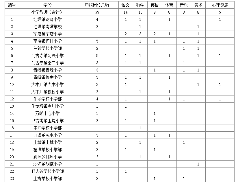 2024年房縣面向社會公開招聘116名義務教育學校教師。具體崗位如下: