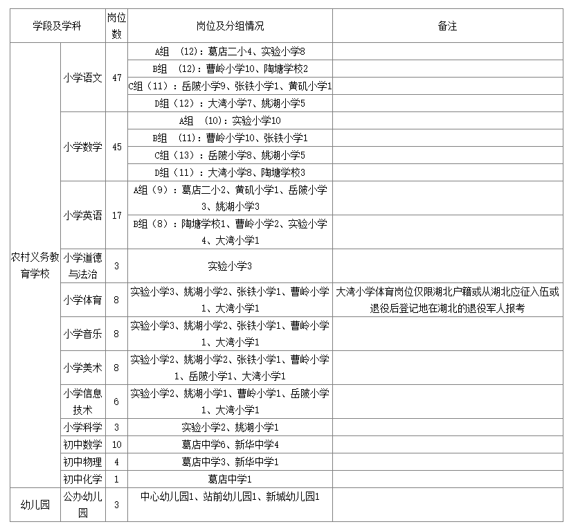 (1)崗位設置:葛店經(jīng)開區(qū)大灣小學體育崗位(1個);